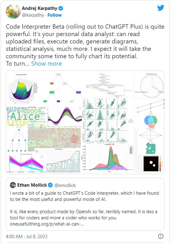 🗞️ This week in AI → OpenAI's Code Interpreter is now available to all 20M paid users. Let’s talk about how you can make it your data analysis copilot.